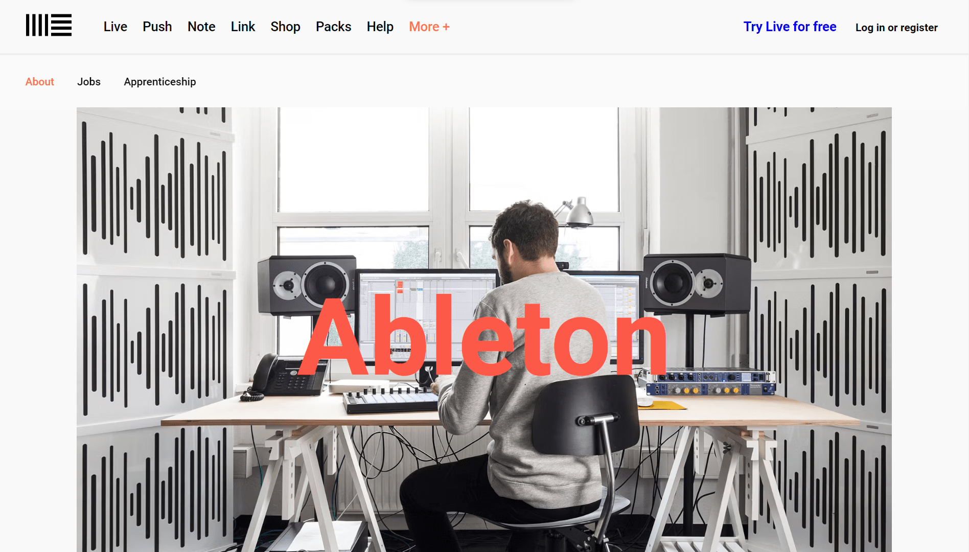 A copy of a webpage of Ableton with all the animations, colors and details.